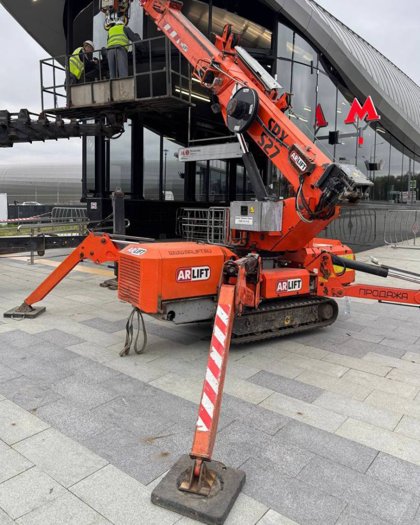 Мини-краны пауки отлично подходят для объектов с жесткими ограничениями доступа и пространства для работы. Они эффективны для фасадного и высотного монтажа, перемещения грузов внутри здания и установки конструкций на горизонтальном вылете стрелы — когда нужно, например, пробраться под козырёк. За счёт компактных габаритов эта компактная техника может работать на перекрытиях — там, где обычные машины не пройдут по весу. Рассмотрим реальные примеры задач, с которыми работают мини-краны пауки:
