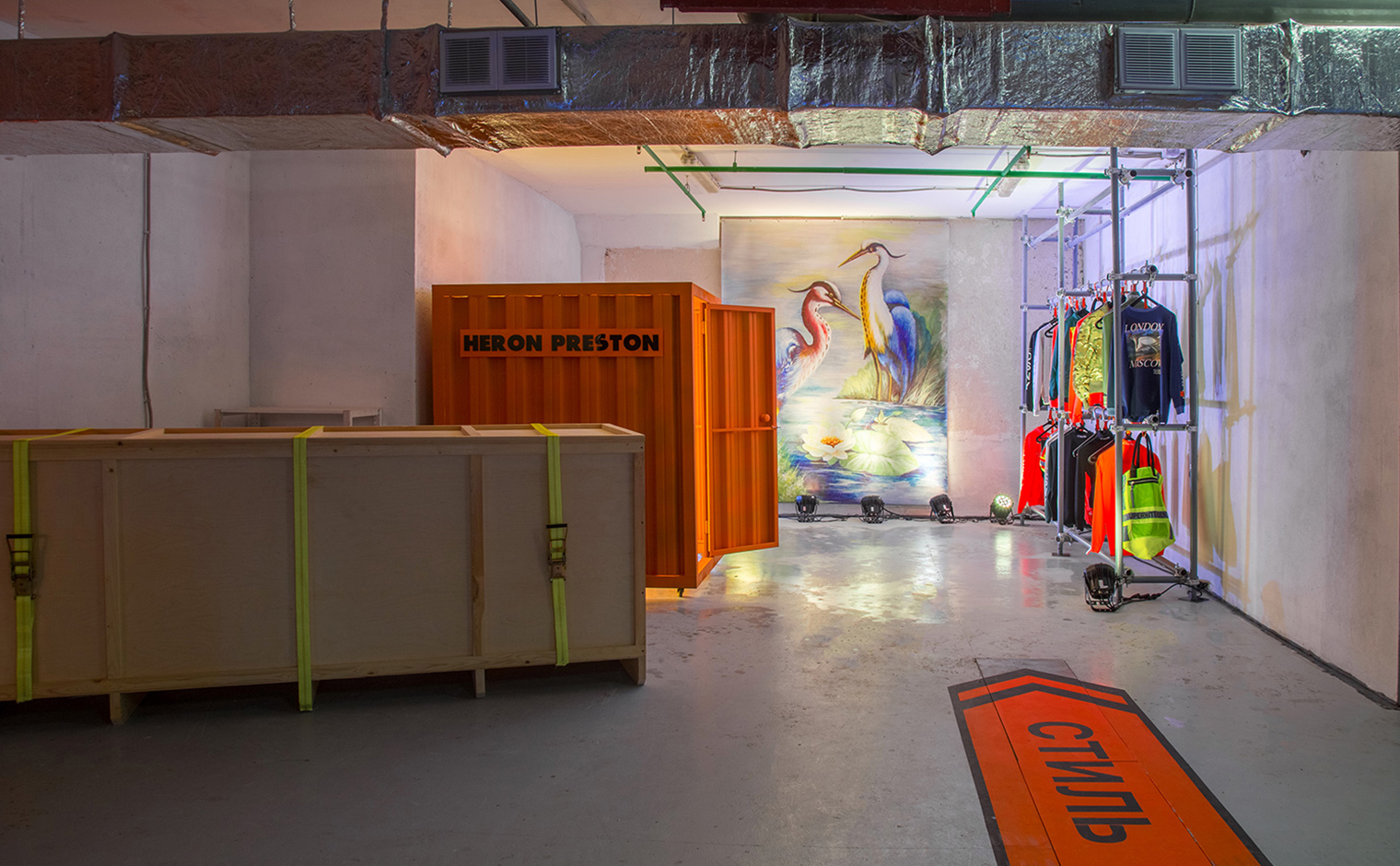 Но на выставке американского дизайнера уличной одежды Херона Престона - воплотившем в своей коллекции идею униформы – строительная техника АРЛИФТ выглядела очень гармонично.