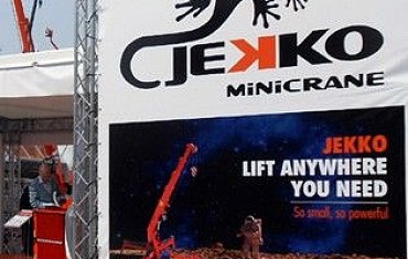 Мини-кран JEKKO, оборудованный интегрированным на стрелу вакуумным захватом, осуществил замену стекла. Уникальность монтажной работы состояла в том, что стекло было расположен под обратным углом относительно земли.