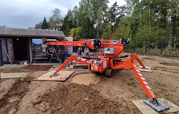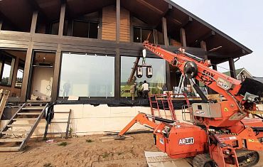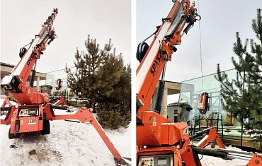 Техника компании Арлифт помогла смонтировать стеклопакеты с помощью мини-крана и дополнительного оборудования – манипулятора.