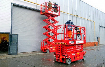 Два ножничных подъемника компании АРЛИФТ с рабочей высотой 12 метров помогли при монтаже профиля в Санкт-Петербурге