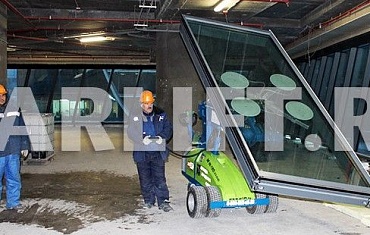 Монтаж крупногабаритного стекла стеклороботом Winlet.