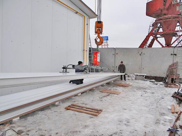 Монтаж кровельных сэндвич-паней 12 метров (ППУ).