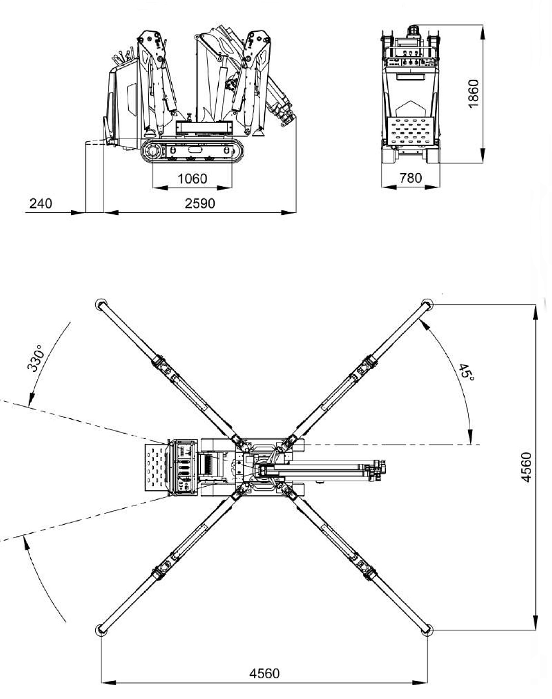 2495 x 780 x 1850 мм